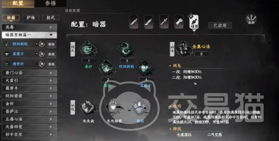 在挑选暗器类武技的搭配时,建议将九阴心法作为核心,辅以绵柔或毒攻类心法,避免与刚猛型心法叠加使用。武器选择上,弹月暗器是较为理想的搭配,配合暗影秘典功法招式效果更佳,这两件物品都可通过完成蓉城茶馆的隐藏任务获得。