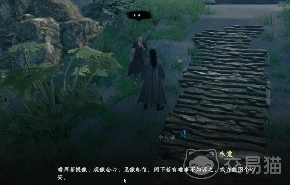 接下来,前往村中的佛像前,那里会触发一段剧情。剧情并不复杂,但它会为你后续的任务铺好道路,让你对石像和任务背后的秘密有一个大致的了解。