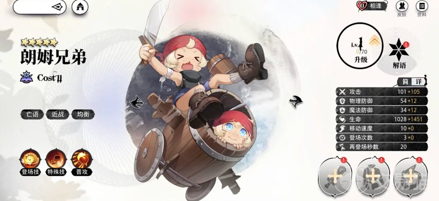 朗姆兄弟跟福格是要一起介绍的,四星角色朗姆兄弟凭借开局即可发动的超视距抛射攻击,成为特定副本的破局利器,其技能引力弹道可跨越战场障碍直击后排,在需要速杀首领的关卡中,往往能创造绝地反击的机会,与之类似的其实就是福格这个角色,他作为前期强力先锋,通过三次阵亡后生成的六个继承属性的小矮人,可在限定场景中爆发出惊人的DPS,虽然受限于星级导致后期成长乏力,但在开荒期与特殊机制关卡中,其战术价值不亚于五星角色,毕竟能完美适配BOSS血量阈值刚好触发继承这种苛刻条件的,唯有福格的献祭流打法。