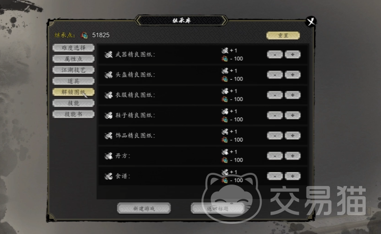 武器方面虽然不建议投入过多继承点,但适当分配仍有意义,一品武器能在二周目前期直接提升角色攻击属性,为前期战斗提供助力,玩家可投入少量继承点获取,并且一品武器分解后可得到前期难以获取的陨铁锭,用于后续锻造更高级武器,从长远来看对角色成长有益,图纸的继承也不容忽视,高级帽子图纸值得玩家关注,尤其是四品及以上的帽子,这类帽子在游戏中可提供每回合回血效果,这在持久战中能极大增强角色的生存能力。