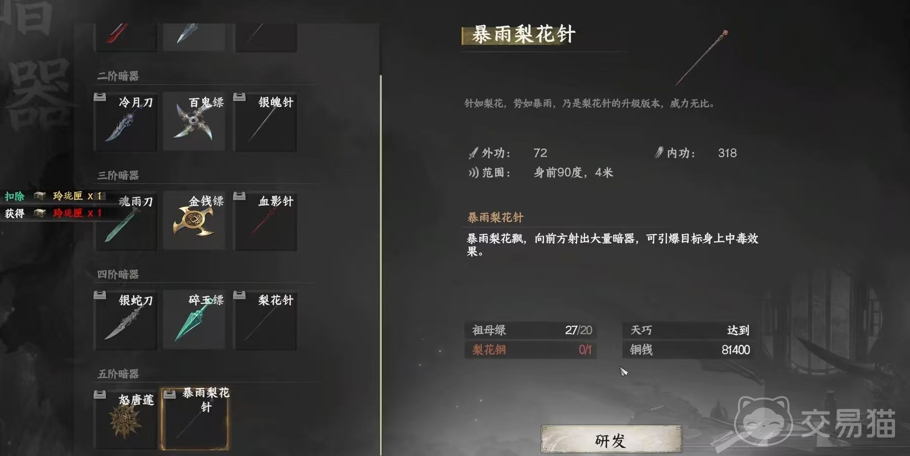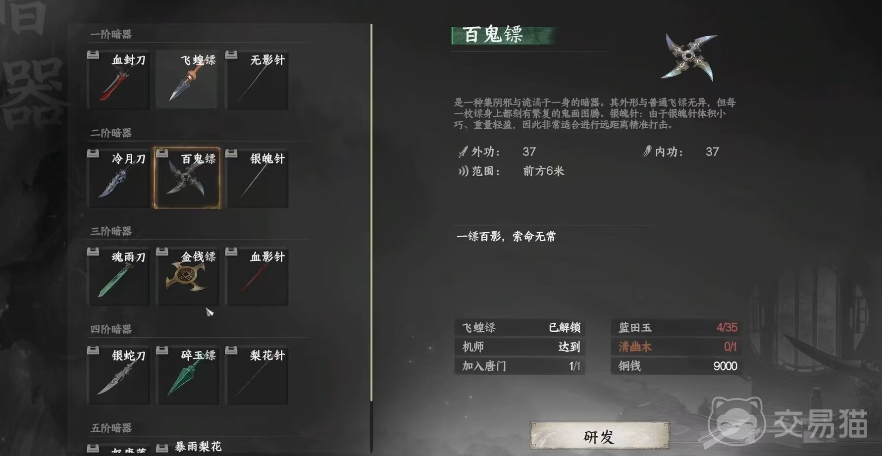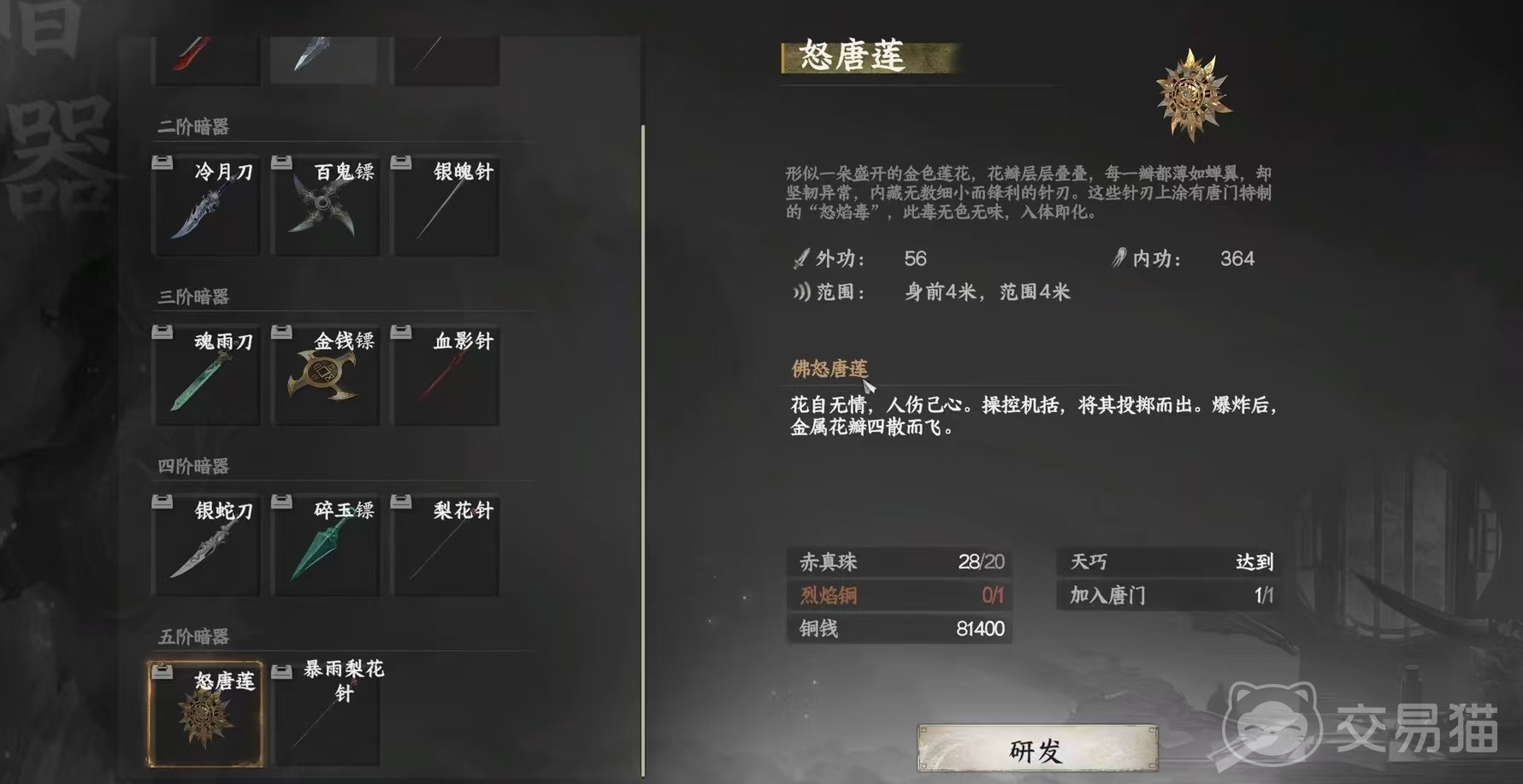 在完成入门之后,接下来最重要的就是晋升,唐门弟子晋升方式和其他门派有所不同,其他门派都是做各种战斗任务,而唐门弟子是通过打造不同等级的暗器来获取晋升任务。从内门弟子开始一直提升到掌门,需要依次打造二阶到五阶的暗器,除此之外还要满足墨学、巧手、练器这三项属性的要求。和唐儒对话之后可接取到晋升任务,完成之后就能提升自己的身份,最高能够升到掌门,成为掌门之后,就可以获得绝品暗器武学菩萨泣。