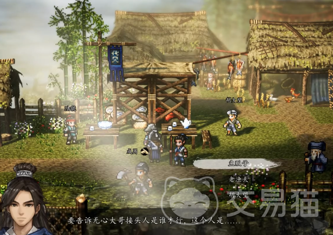 通过和村民的对话后,能初步判断和天河帮街头的人会是靠近码头且能合理存在在码头的npc,在探索村庄时也能发现双河村习惯用鱼内脏来喂养鸡鸭,在码头边调查时还发现了桃花花瓣,村里只有东边才有桃花林,因此确定了接头人就是【鱼贩子】。