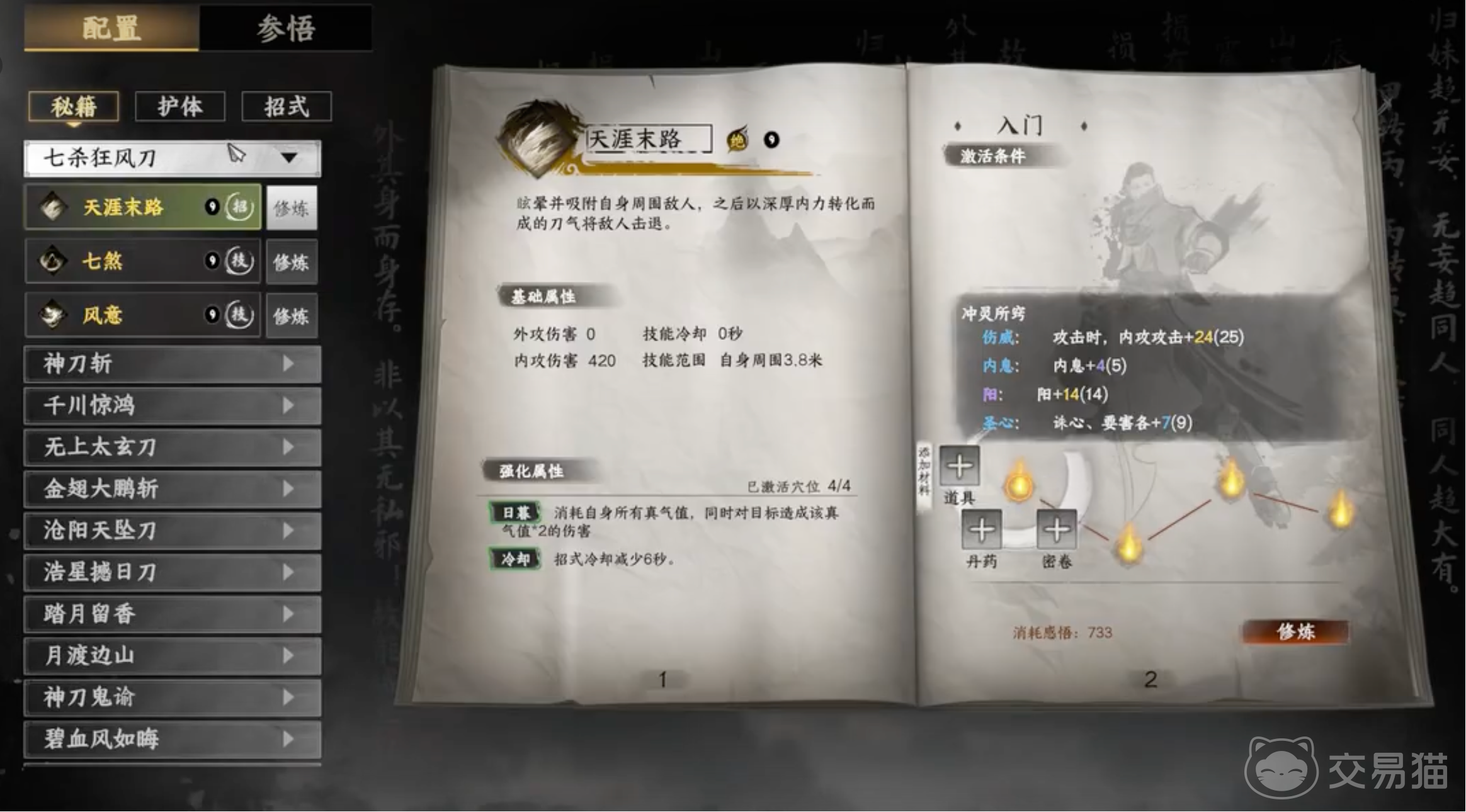 七杀门的刀法风格偏向于快速而连续的攻击,讲究破防与击倒对手。七杀门的刀法技能组合灵活,拥有更多的控场与突进手段,非常适合喜欢主动出击、追求战斗节奏快感的玩家。七杀门内功往往偏向于提升暴击率和攻击速度,能够让刀法连击更加连贯且致命。玩家若选择七杀门修炼刀法,在实战中可以通过不断穿插快速的技能释放,打乱敌人的节奏,从而掌控战斗主动权。