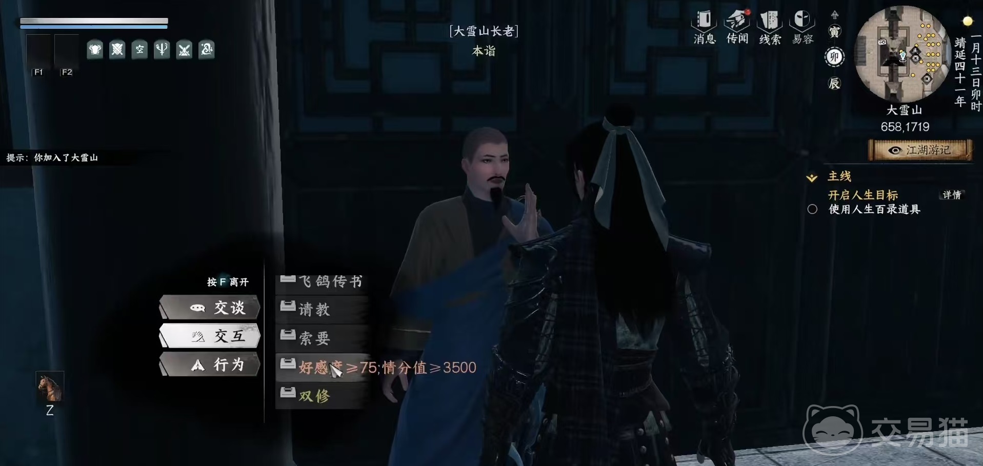要想成为大雪山的掌门,需要先加入这个门派,大雪山是属于拳法门派,对玩家的佛学属性有着一定的要求。在佛学达到50之后,可以收到澄心的飞鸽传书,然后来到澄心处和他辩论佛法,在完成好学游僧的江湖故事后,获得澄心的推荐信。再根据飞鸽传书的指引和本诣去进行交谈,就能够加入大雪山了。