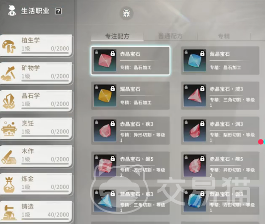 植生学系,所涵盖的职业较为丰富,包括烹饪植物学,其中植物学包括采集草药果蔬,对于料理制作有着极大的作用,烹饪炼精会消耗鲜肉,等众多材料来制作回血药剂。还有材料加工系,核心产出为加工鱼肉怪物素材为烹饪与炼金提供更多基础原材料。晶石系也是很多人非常关注的核心模块为晶石学以及晶械工艺。
