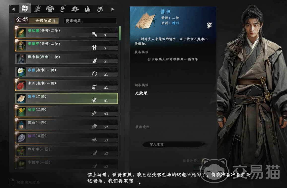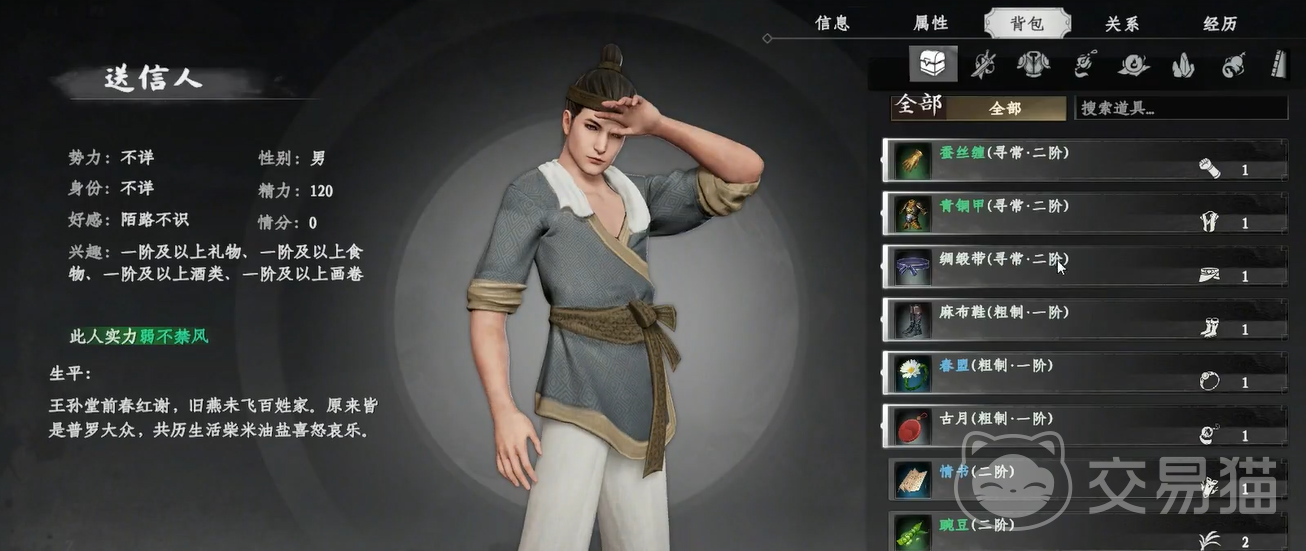 根据提示,玩家需要找到送信人,并与其交谈。通过对话,你将得知,这封信其实是一封情书,是马夫人写给马老爷弟弟——马世贤的。面对这一信息,玩家可以选择两条道路。第一条是试图通过“送礼”获取信件。你可以通过提高与送信人的好感度,达到一定标准后提出请求,通常这种方式较为和平。但问题在于,获取情书所需的情谊值高达六千多点,显然这并不是一个容易达成的目标。若情谊值无法满足,和平解决的方式就无法实现,玩家只能选择通过战斗解决问题。
