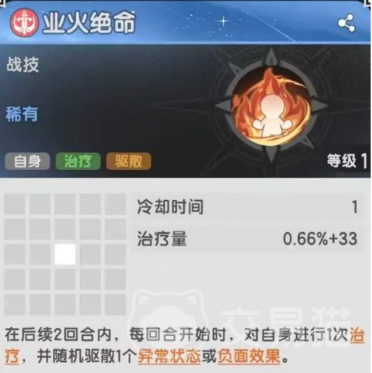 业火绝命提供治疗和净化功能,理论上能在面对大量debuff时发挥作用。然而,由于其治疗量相对较低,且无法有效抵御大量高强度debuff,因此这个技能在实际战斗中可能不会成为主力技能。尽管如此,它仍然在特定情况下可以提供一定的辅助功能。