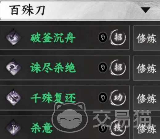首先要提到的就是百殊刀。这把刀法几乎是所有刀法中最为暴力的代表。其二技能“诛尽杀绝”让所有带有Debuff的敌人遭受双倍伤害,这直接决定了百殊刀在各种战斗中能打出惊人的伤害。配合它的内功“千殊复还”,让玩家不仅拥有强大的吸血能力,还能提升攻击力。加上被动技能“杀意”,使周围敌人受到的伤害提高,百殊刀的伤害加成能力堪称恐怖。唯一的缺点是它依赖Debuff的加成,但这并不影响它成为顶尖刀法之一,尤其是在团队配合和副本挑战中,百殊刀的表现几乎无可挑剔。