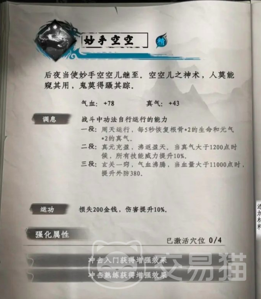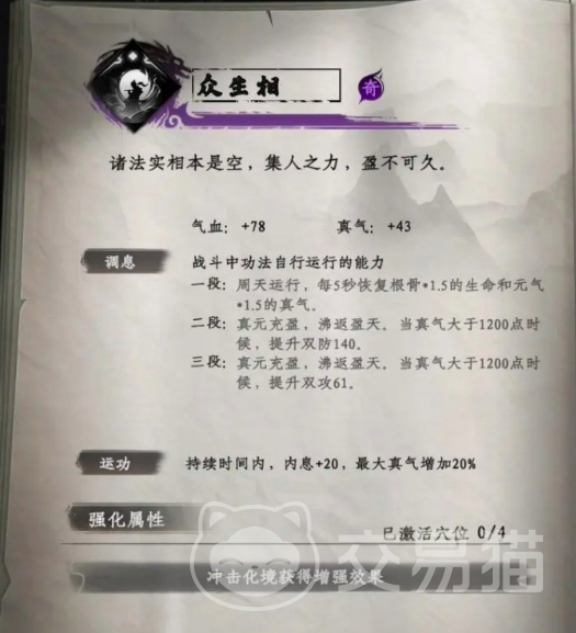 第五部众生相,玩家前往(738,1237)这个位点,击败该位点上的boss武阳,就可以成功解锁该秘籍。玩家在用功后,内吸可增加20,最大真气增加20%。
