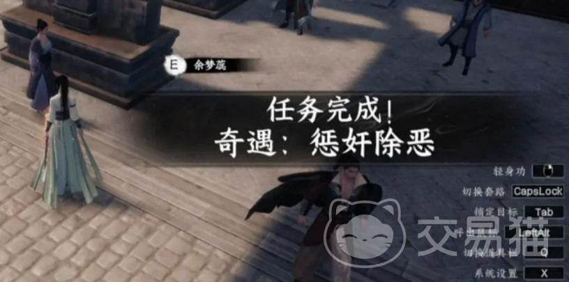 接下来,我们开始第一把密匙的寻找之旅。孟章密匙,需要完成“惩奸除恶”奇遇。在(901.829)这个地点,你会自动触发与余梦蕊的对话,选择“出十两”后进入战斗。击败马启等敌人后,剧情会稍微停顿,接着会触发“鼎力相助”的任务。这时,你需要来到(864.773),与谭彦杉对话,击败陈累,获得账本,回交给谭彦杉。对话后,你将获得孟章密匙。