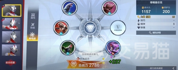 作为一款网游,它也是有养成要素的,有属性提升,有等级共享,还有通过开启奥特卡包等方式获得卡片来为奥特曼搭配合适的增幅器,来强化其在某一方面的能力,这部分也会是游戏战斗策略的重要一环。