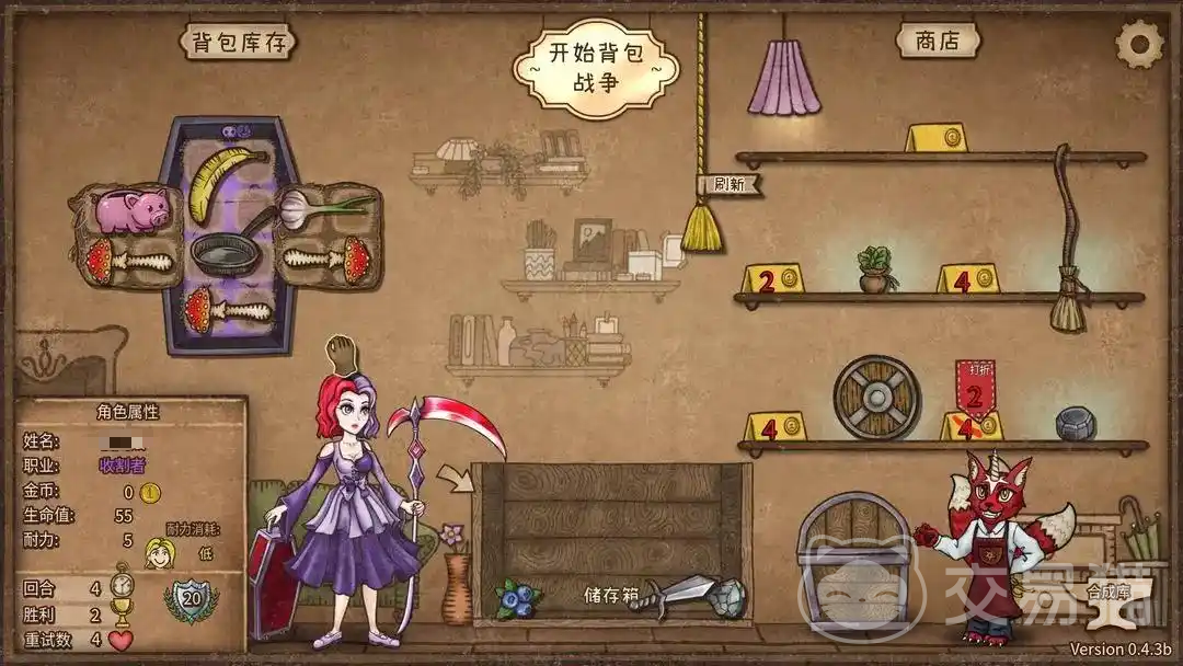 刚开始时可入手木剑和平底锅,这样角色耐力高消耗能平衡住,注意让食物绕着锅进行摆放,点亮星星能提升输出,锅还可与应用魔药,腐败水晶融合。要优先购买打折的物品,1金币的物品也能适当的囤积一些,合理交替的去购买装备以及背包格子,如果有4个空格,可优先考虑购买装备。香蕉是很重要的物品,多收集一些。木盾开局也能买,能提高生存,与海象尖牙可融合。