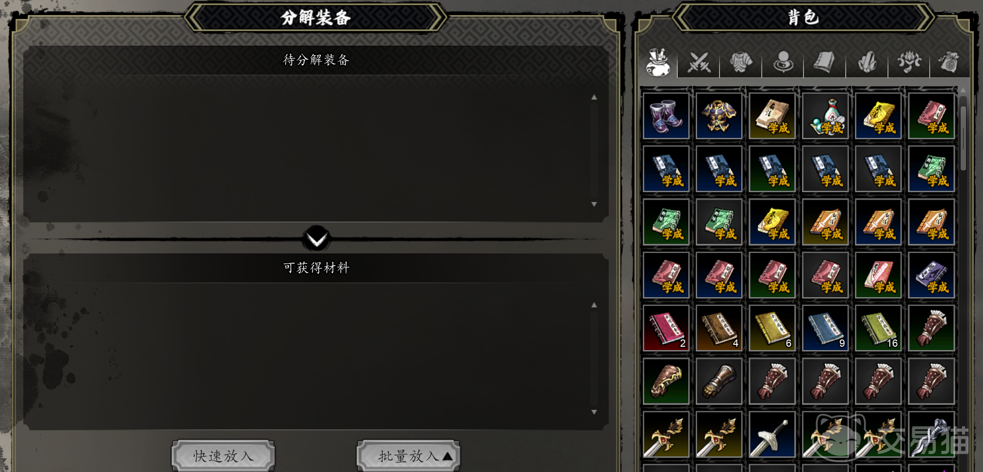 还有个刷法,玩家在平康城找到铁匠铺,从他那里买来价值78银币的白光剑。然后再向铁匠铺支付50块,将白光剑分解。分解会获得一批铁锭、煤矿、木材。要知道,铁锭可以卖100,煤矿和木材能各卖50。这一来一回,能净赚372枚银币。