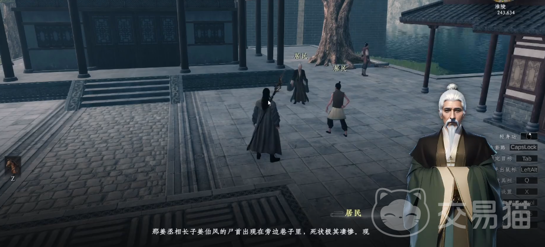 先到坐标(244,634)位置, 触发这里的 2 个居民的剧情内容,对话结束后获得任务线索。