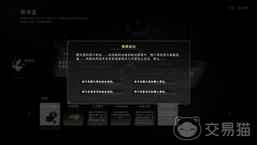 基于上述过程能获得如图上所示的线索内容,玩家需要根据这些线索来完成相关剧情关节节点的推理,具体可以得出以下的结论:
