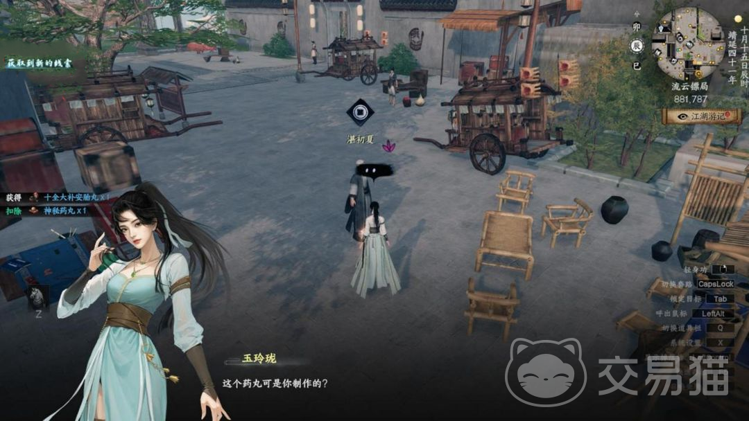4、将道具神秘药丸拿给NPC湛初夏,他的位置在步婶旁边,具体坐标是(881,787)。