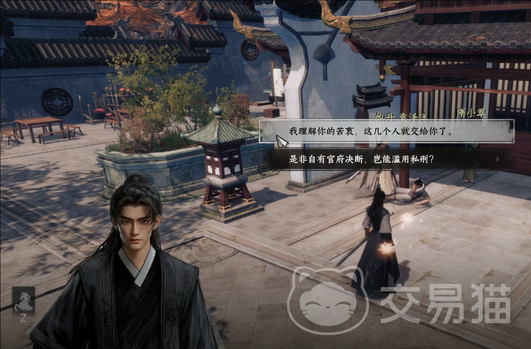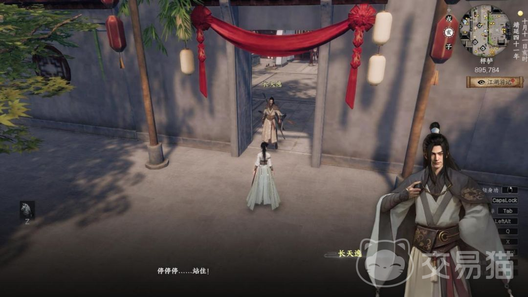 6、根据任务指引,来到门口的位置触发剧情,剧情后找到NPC长天逸,长天逸的位置具体在枰栌(872,751),对话过程中选择质疑,选择质疑后需要和长天逸对战。