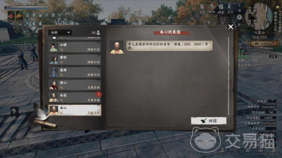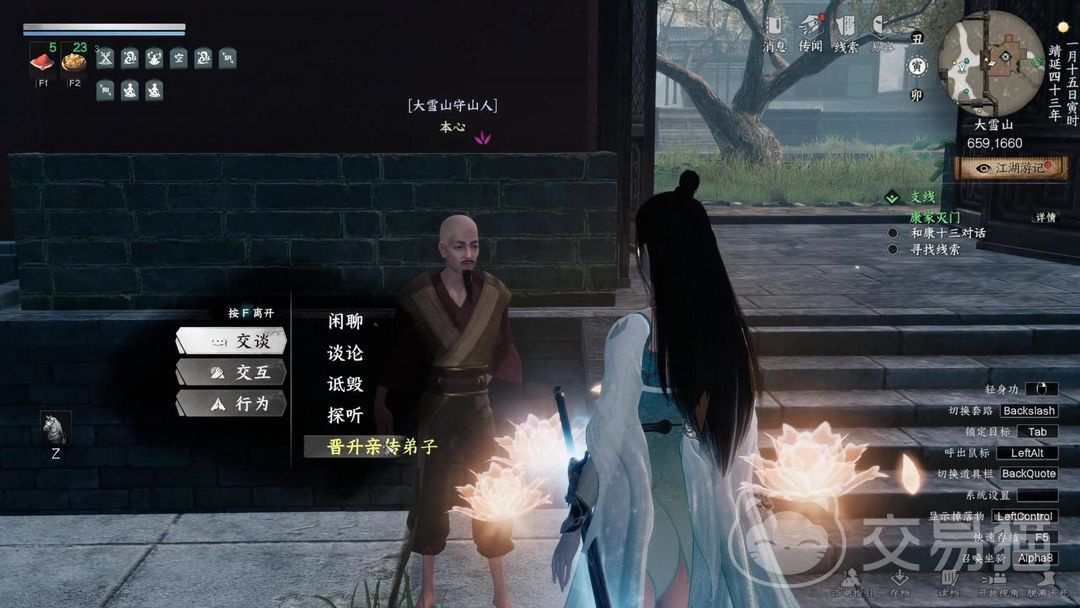 1、来到坐标(658,1660)与本心交谈,对话后领取到成为“大雪山亲传弟子”任务。