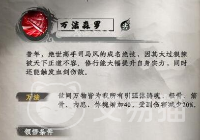 顺利拿到3个药材后,我们将万法归一丹给制作出来,然后服用就会有动画,提升我们已经学会万法森罗,万法森罗是绝世高手司马风的成名绝技,因为太过于狠辣,才被天下正道所不容。