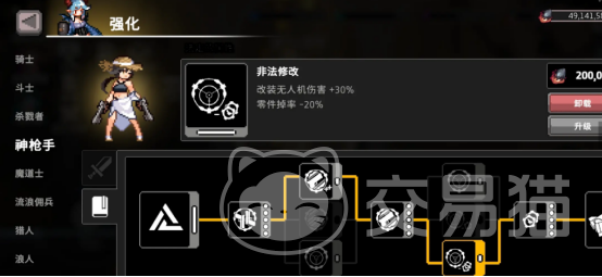 加点也是较为简单的,其中主加点可以选择比较常见的愤怒基本技能,攻击力能够增加50%,攻击速度增加20%,暴击率增加10%。附加点可选择贪婪,运气增加16%,初始黄金增加400.在天赋方面,主要输出是无人机发出的武器技能,因此伤害点满减掉率是并不需要过多担心的。此时改装无人机,也就是我们利用零件合成打造的武器,可搭载到神枪手腰上的无人机。