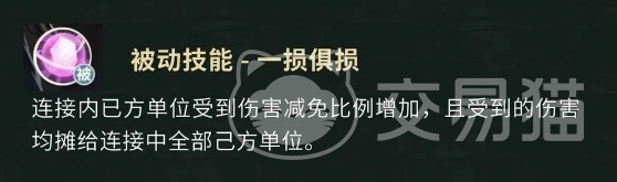 最后要介绍的是吴三省的另一个被动技能叫做一损俱损,这一技能的效果同样十分独特且实用,在连接内,己方单位受到伤害减免比例会增加,这意味着在同一排的队友能够享受到更高的减伤效果,进一步降低了前排队友被敌方集火秒掉的风险,而且当有队友受到伤害时,这些伤害会被均摊给连接中全部己方单位,这种伤害分担的机制使得整个前排形成了一个紧密的整体,不会因为某个队友突然受到大量伤害而陷入崩溃的局面,从而有效地提升了整个队伍的生存能力,为后排的队友提供了更加稳固的屏障。