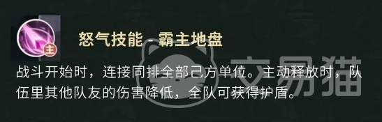 更为独特的是,这一技能还伴随着一定概率能够恢复自身生命上限值的效果,在激烈的战斗中,吴三省一边对敌人造成可观的伤害,一边又能凭借这一技能持续地恢复自身生命上限值,这让他在前排扛伤的过程中更加游刃有余,能够更好地履行自己作为前排肉盾的职责,接下来就是吴三省的怒气技能,叫做霸主地盘,这一技能堪称是吴三省在战斗中的王牌技能之一,其效果之强大跟机制独特并存。