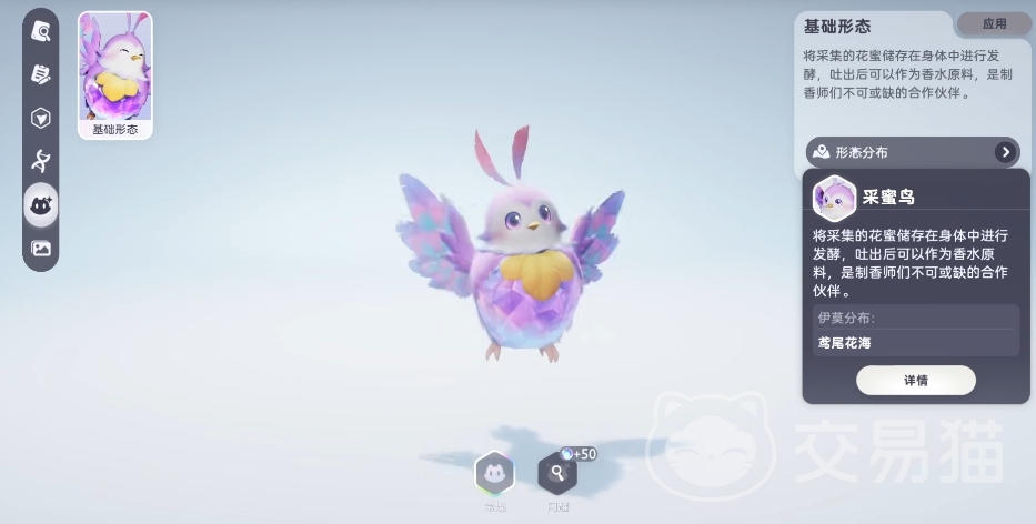 采蜜鸟:同样属性为暗,它有着一项特别的技能,就是把采集到的各种花蜜小心翼翼地储存在自己小小的身体里面,就像一个随身携带的天然蜜罐,然后它会耐心地等待花蜜在里面慢慢发酵,等发酵成熟之后,便会吐出这些经过特殊处理的花蜜,而这些发酵过后的花蜜可是制作高档香水的优质原料,也因此让采蜜鸟在伊莫的世界里也是很多玩家都喜欢的一类宠物。