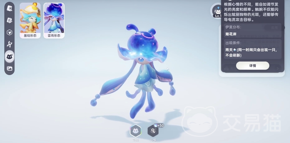 吊灯水母:属性为电,它会根据自己的心情好坏,调节自己身上发光的频率和亮度,长长的触腕可不仅仅是用来展现美丽的,不仅能散发出绚丽多彩的光芒,吸引周围生物的目光,还能在关键时刻传递出强大的电流,对对手发起攻击,不过要是想抓到这神秘的吊灯水母,还得完成一系列的任务,需要先接取吊灯水母boss任务,然后在特定的场地里,等到流星坠落之后,迅速赶到坠落点,在那里大家就可以看到吊灯水母了。