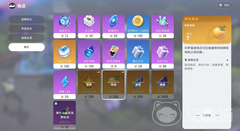 特性在游戏中相当于被动技能,每个伊莫都有两个特性,分别是普通特性和隐藏特性,特性的切换可使用营地商人购买特性果实进行切换。隐藏特性和普通特性的好坏,没有明晰的界定,大量的实践证明,两者之间需要根据伊莫的实际需求和养成情况来选择。