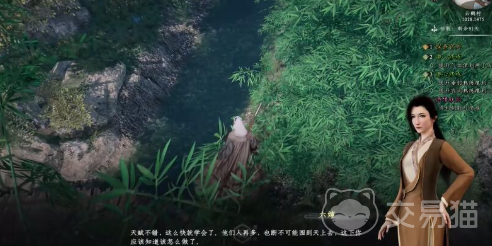 找到孙一芳对话,会触发高手对战并完成“初识小村”任务,记得在战斗中选拔刀相助,这样完成后到六婶家找她对话,跟着信息到位置把埋藏的酒给挖出来,听一下甄嘉和贾正的谈话,了解下擂台赛的事情,再找灵均对话后把酒拿给六婶能拿到白玉玉佩,展开人物页面将其佩戴,了解辅助属性能获取到“周天吐纳功”,一个月后到小桥上和任天游谈话并完成“采捕养成”任务,顺着指引到一个地方后会触发一系列剧情并进入战斗;