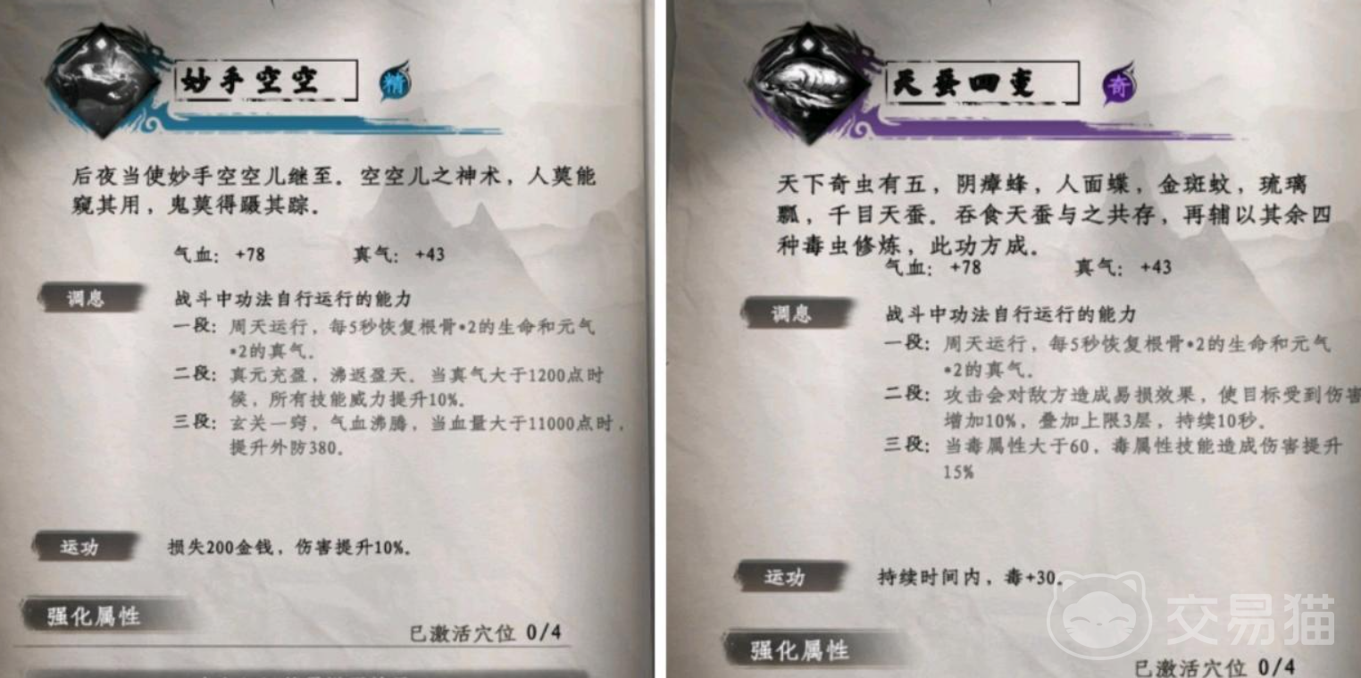 “白首太玄经”“天蚕四变”这类通用心法能显著提升修炼效率和武学兼容度,获取往往也极具挑战性。比如“白首太玄经”需要在无心地宫中集齐六把钥匙,不仅位置分散、获取条件复杂,而且途中机关重重,极具探索性。此外,“百战圣功”作为全游戏最强通用功法之一,需要在击杀主线boss吴德后交出信件再谋杀伯子越才可获得,设定相当黑暗但极具江湖气息。而“万法森罗”作为护体类功法的顶点之作,则需通过高级炼丹、采集稀有材料、服药等操作才能学会,使得内外兼修成为可能。