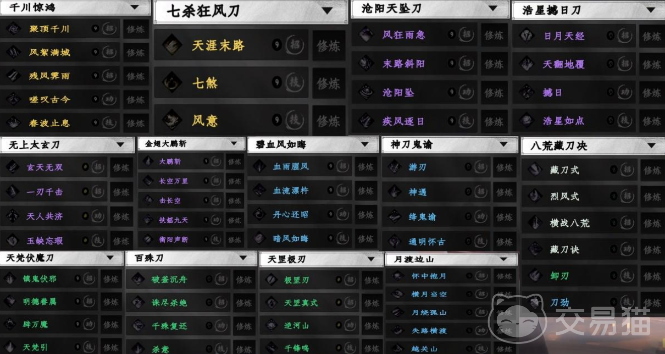 不少刀法主打高爆发与破防效果,适合快节奏的对战风格。“浩星撼日刀”、“无上太玄刀”等紫色品阶刀法都具备不俗威力,而“金翅大鹏斩”、“七杀狂风刀”这类金色武学则能在实战中形成质变,成为逆转战局的关键。其中,“千川惊鸿”不仅为刀法代表作之一,还同时能作为主线机关“神武将军传闻”系列解谜的终点奖励。此外,一些特殊刀法如“天罡极刃”、“八荒藏刀诀”可通过打听获得,而“沧阳天坠刀”、“碧血风如晦”等则融入支线任务与书院兑换机制,让刀法玩家也能从探索中获得成就感。