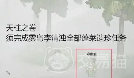 最后一本是天柱之卷,需要大家到雾岛,找到李清浊进行对话,接取蓬莱遗珍任务,帮助他到各个岛屿上找到八仙奇珍后,返回再次对话,就可以获取到他赠送的最后一本书了。