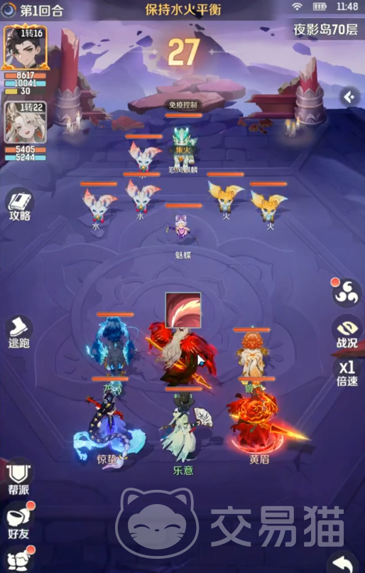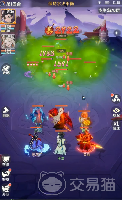 玩法其实也不算复杂,起手利用四面出个将敌方关键目标直接封印,输出治疗角色都可以,之后放出“万毒攻心”将中毒层数叠加;如果敌方有威胁较高敌方单位,”实心狂乱”让敌人行动混乱,将该单位进攻节奏彻底打乱。
