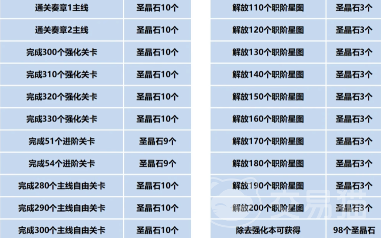 常驻方面,多达17项主线推进任务,每项完成可获得10石,总共170颗圣晶石。补全以往常驻任务数量后的奖励,不含强化关卡即可获得98颗石头。如果有余力再去完成所有的强化关卡任务,还有可能再获取最多40颗圣晶石。再加上官方因技能系统调整而发放的120颗补偿石,以及版本更新的10颗补偿石。