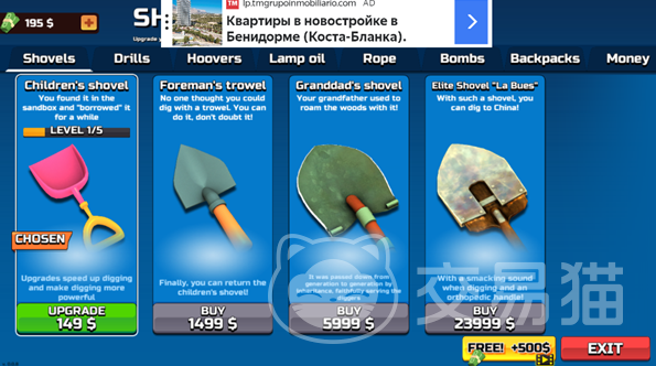 游戏的操作是很简单的,可以通过点击或者是滑动的方法去完成挖掘,所有挖掘到的物品都可以放到市场上去出售。每一个不同物品出售的价格都会有所区别,并且市场的需求也会因此出现变化。玩家要想有效提升挖掘的成功几率,还可以去购买一些高级的道具,例如喷气背包,还有先进的探测仪。可以有效提升挖掘的速度,可以有效提升发现稀有物品的概率,让玩家在探索的过程中觉得更加的有趣。即便是新手玩家在游戏中也不会觉得很复杂,整个游戏的操作体验还是比较有趣的,因此也吸引了不少玩家关注。