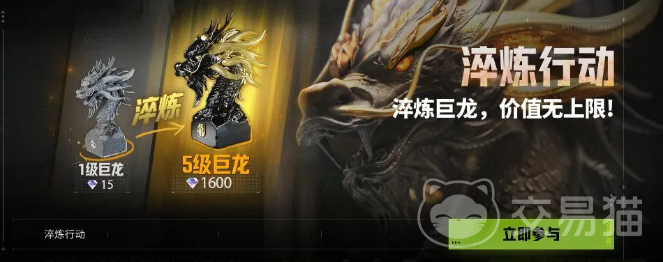 全新解锁两大玩法,首先是镭钻玩法-巨龙淬炼行动上限,这是每周末限定时间开启的,周五到周日的18点到22点可参与,每个玩家都有机会获得大金龙,1*1的原始巨龙就是大家的入场券,可深入战局寻找淬炼装置,进而开出价值无限的至尊巨龙;加入试炼,等于展开全新的冒险。