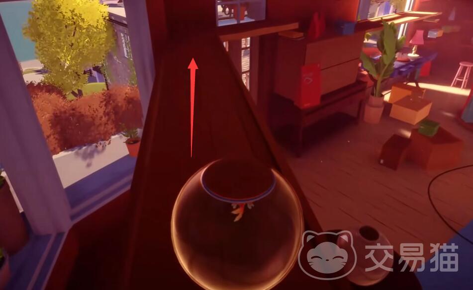 从阁楼的鱼缸开始,先沿着地面的银杏叶标识滚动,注意避开趴在书架上的猫,被猫爪拍到会导致鱼缸剧烈晃动。到达滤网边缘时,缓慢调整方向使鱼缸中心对准滤网中央,借助重力跌入下方的大浴缸。在浴缸内顺时针游动,利用水流推力将鱼缸推到右侧出口,通过缺口进入下一个房间。房间内的蹦床是关键,从蹦床边缘起跳,借助弹性跃入对面的水池,水池内的水流会自动带你进入排水管道。