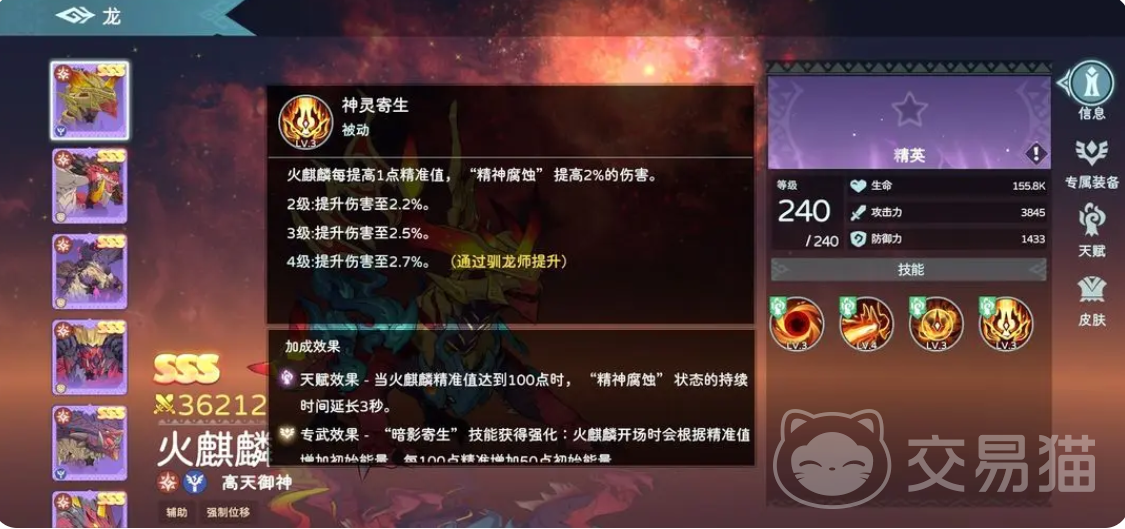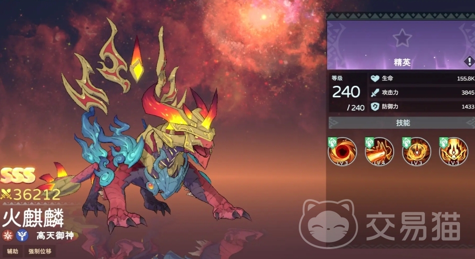 火麒麟的专属装备火麒麟之瞳是其战斗力提升的关键,开场时,根据精准值为火麒麟增加初始能量,使其在开局阶段能够更快地积累技能能量,提升技能释放的频率。当敌人被黑洞吸入时,有60%的概率被眩晕,进一步增强了火麒麟的控制能力。因此,火麒麟的专属装备提升了其输出能力,还强化了其控制效果和精准值,对于提高火麒麟的综合战斗力至关重要。