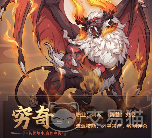 穷奇:对于外形的描述,可能就会有多个不同的分类,有人会说外形是比较可怕的。但也有人会说,如果从外形上来看会有一些可爱,就好像是宠物一样。但不可否认的就是,这是一个相对比较强悍的异兽。觅血寻踪对于生命最低的敌方单位就可以形成242%的伤害,并且在持续的两个回合内都会有效果。狩猎时刻对于生命值较低的敌方成员可以造成40%的伤害。敌方场上存活的目标越多,那所造成的技能伤害系数也就越高。