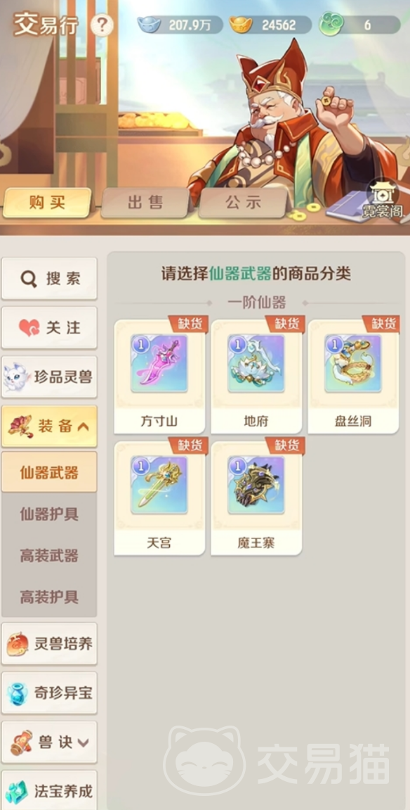 玩家如果来到了交易行想要购买道具的话,只能够购买其他玩家上架的道具,比如说玩家这时候想要获得灵兽培养的材料或者是法宝材料,而自己又没有太多的时间,只体验游戏来获得较多的资源,这时候就可以借助交易的货币直接进行购买,只是玩家在购买的时候要关注一下具体材料的价格。其实在交易行当中,玩家也可以拥有属于自己的摊位,然后将自己在体验游戏时所获得的物品直接上架,通过出售之后,玩家也会获得货币通宝,这样的话玩家也能够拥有其他的物品。