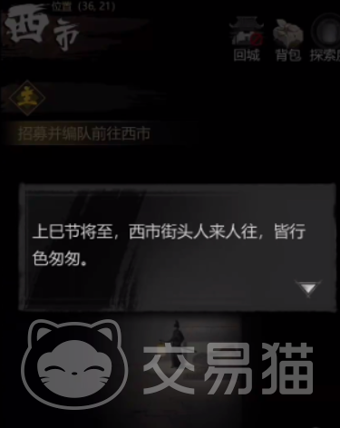 而在西市这个位置当中,与NPC的交流十分重要,因为除了这些据点,玩家还需要在心事中与各种明怪、暗怪进行战斗,并且还需要按照不同的NPC需要触发对话寻找物资。