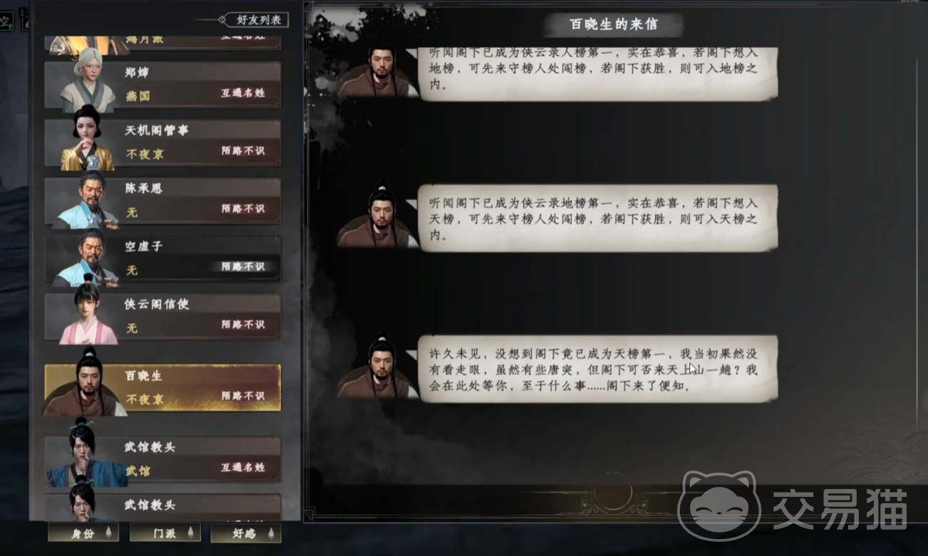 在挑战三圣之前,小伙伴必须击败天地人三榜的顶尖人物。分别是人榜的朱孔明,地榜的无暇子以及天榜的独孤飞鸿。当三榜榜首全部被击败以后,此时就会收到一封百晓生的来信,他会告知玩家下一步的相关事宜。虽然玩家们只需要达到30级,就可以对榜单上面的人物进行挑战,但是这里面还有一些隐藏的门槛。