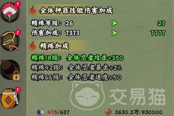 除了忍者本身的培养与成长之外,神器系统也是构成战力的重要补充部分,每一件神器不仅能在战斗的关键时刻提供主动技能支援,还能为全体上阵的忍者赋予全面的属性加成,在新手阶段的主线任务中,玩家将会获得第一个神器,而后续更为强大、稀有的神器则需要玩家通过完成特定的条件或者购买礼包等方式才能获取。