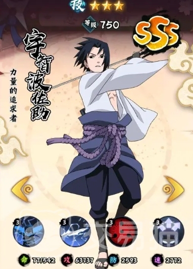 首先要介绍的是宇智波佐助,这位堪称以高速和群体爆发为核心特质的T0级超强忍者,在战斗一开始,他的攻击便能瞬间施加易伤状态,更为精妙的是,他自身拥有针对处于易伤状态下敌人的额外伤害加成机制,这使得他在持续作战过程中,伤害输出能够如同滚雪球一般不断累积攀升,佐助对于速度属性的成长极为依赖,其速度越快,攻击力便越高,甚至存在连续释放技能的可能性,再加上开场时攻击、速度和暴击率全方位提升效果,让他在先手发起进攻的队伍中几乎占据了无可撼动的地位,无疑是整个团队当之无愧的爆发核心与战斗节奏的核心角色。