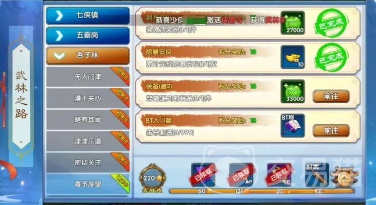 对于那些拥有元宝的玩家来说,开局直接入手50%或100%的经验符,可以让经验获取效率瞬间飙升,而没有元宝的玩家也不必灰心,用绑定元宝购买20%的小加成符即可,后续完成任务还会大量赠送经验符,不过需要注意的是,经验符不可叠加使用,侠客令增益同样不容忽视,激活侠客令三档后,你将稳定获得 20%的经验加成,组队同屏加成也是一个提升经验的好方法,每多一位队友加入队伍,就能增加 10%的经验加成,因此在挂机升级时务必组队进行。
