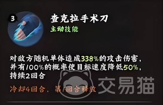 该技能在战斗的第一回合即可果断释放,不过冷却时间需要四回合,值得一提的是,这里所介绍的是技能达到满级后的卓越效果,此时的它已然成为战场上改变节奏的关键所在,当此技能命中敌人后,不仅能直接削减对方的战斗力,还能通过大幅降低其速度来打乱敌方的进攻节奏,为我方创造有利的输出环境,其实目前很多玩家都是不太会用这个减速的,但是就目前而言减速带来的影响是比大家想象中要大的。