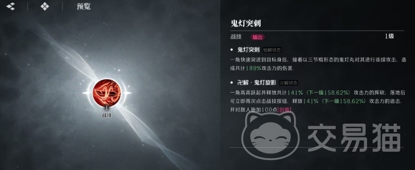 说到他的战技鬼灯突刺,更是将速度与力量完美结合,使用的时候斑目一角会如闪电般快速突进到目标身后,紧接着展开连续不断的攻击,而当开启万解之后,他更是会高高跃起,然后进行挥砍,落地之后,若玩家再次点击战技按钮,他还能释放一次强力的追击,并再次对敌人施加创痕,这里需要注意的是,每层创痕都能使敌人受到额外的伤害,且持续时间长达10秒钟,更令人惊叹的是这一效果可叠加至20层,一旦叠加起来,那造成的总伤害将是相当可观的。