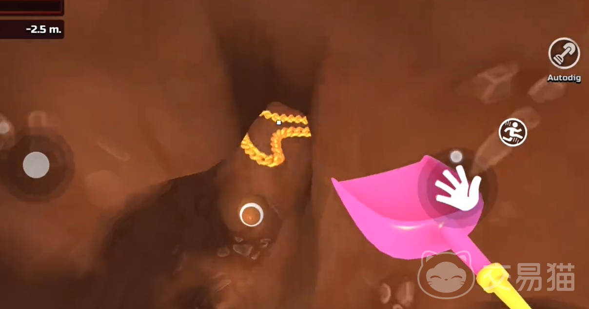 进入游戏之后,玩家可以在空旷的庭院草坪下使用各种不同的挖掘工具进行挖掘。有塑料材质的铲子,还有铁锹,虽然都是铲子,但是作用却大,有不同玩家需要合理的进行使用。往下继续挖掘将会出现石头以及其他的矿物资源,玩家可以使用铁锹加快挖掘的速度,将这些宝物运送到地面上,从而获取更多金币。当出现的宝藏非常稀有时,拿到商店中进行售卖时,它也会更值钱,给你带来意想不到的惊喜。