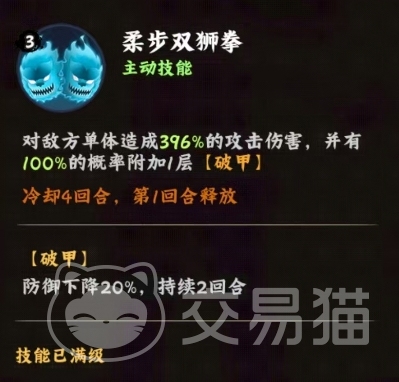 日向雏田的主动技柔步双狮拳,是精准破防的起手式,该技能作为雏田的核心输出手段,可以对单体目标造成396%的超高倍率伤害,这在游戏前期即可形成秒杀脆皮单位的威慑力,更重要的是100%附加破甲效果,直接降低目标20%防御持续2回合,这一机制打破了传统输出依赖单纯堆砌攻击力的模式,转而通过削弱敌方防御实现伤害最大化,例如在面对高防坦克型敌人时,一次成功的破甲足以令后续普攻或队友技能产生输出提升的效果,此外4回合的冷却周期与首回合必放的特性,要求玩家必须抢得先手优势。